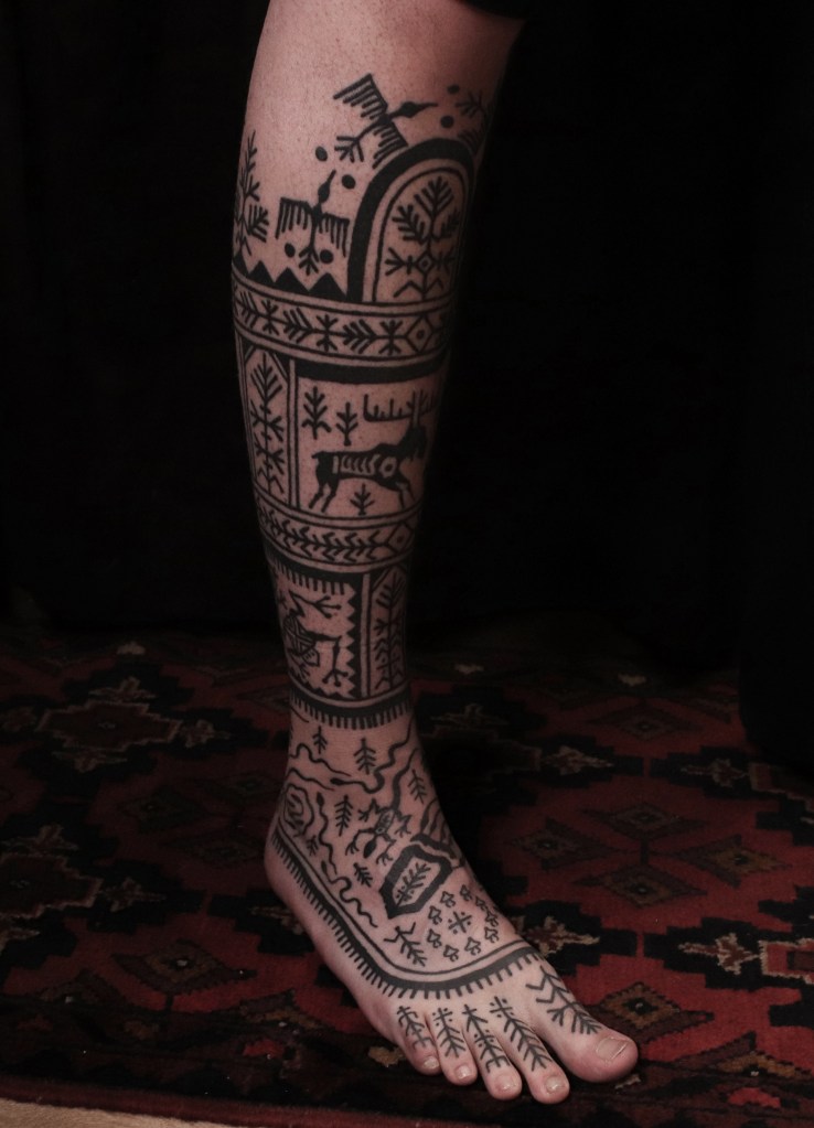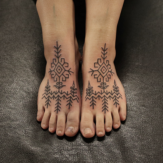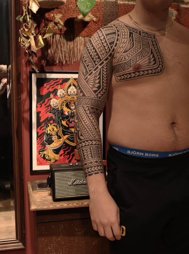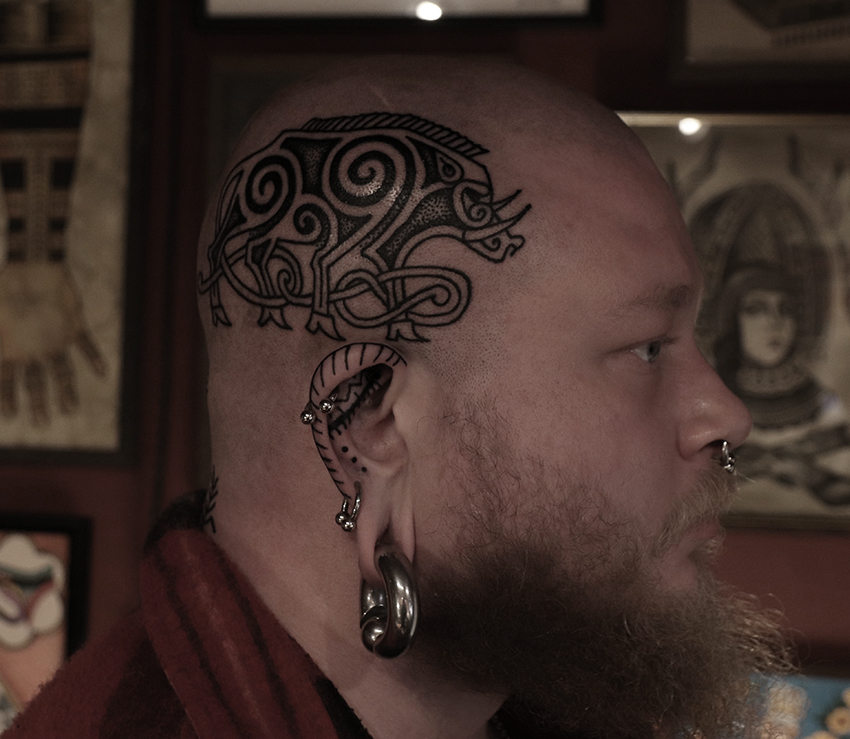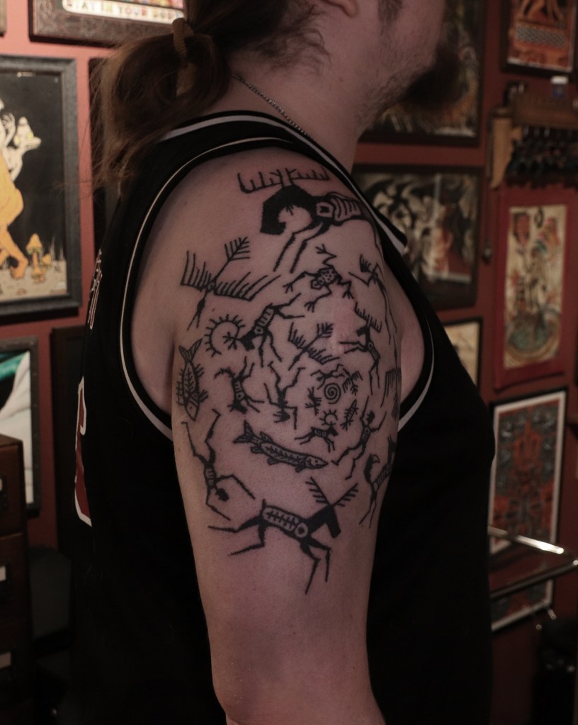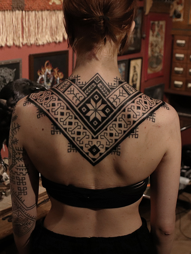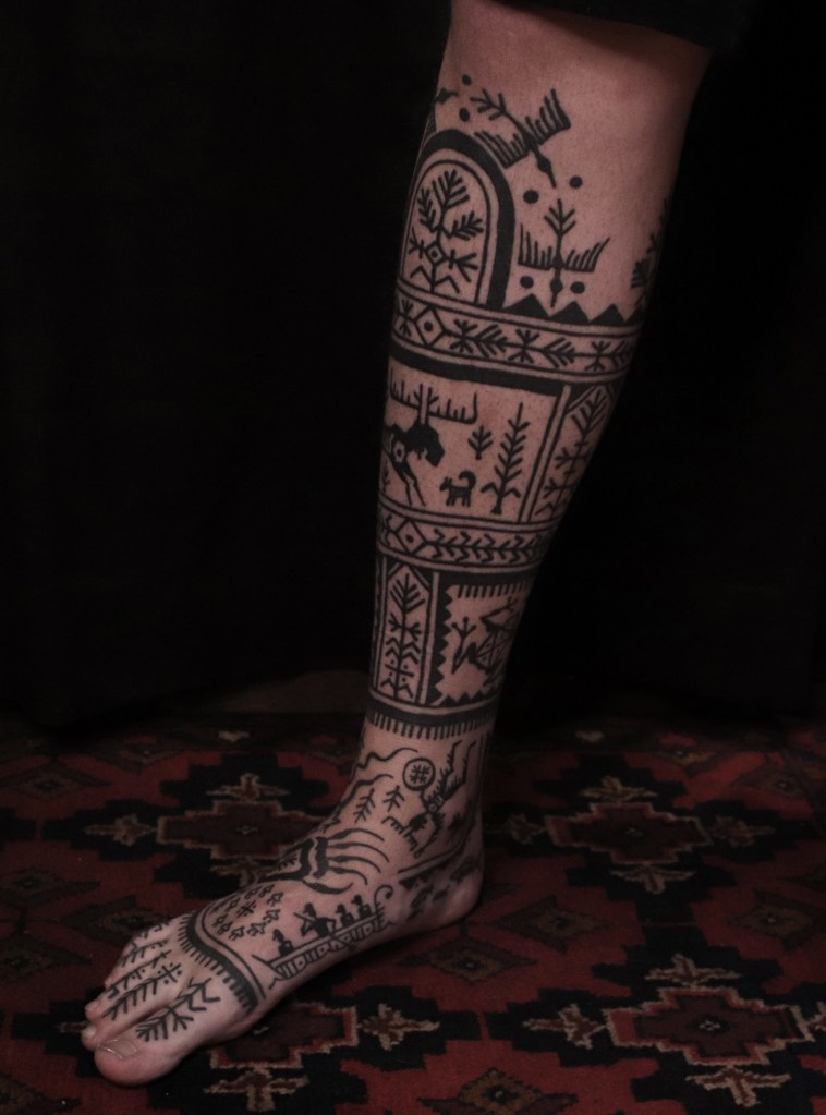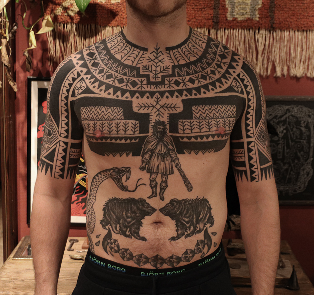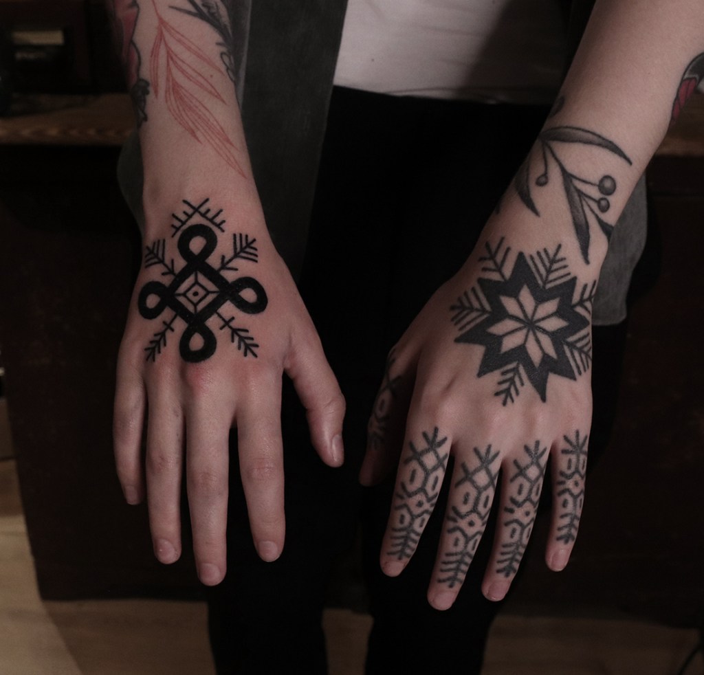 Tatuointiliikkeissä olen työskennellyt vuodesta 2012. Koen vanhat heimokulttuurit ja erilaiset kansanperinteet ja tarinat loputtomana inspiraation lähteenä. Karjalaiset ja muut kotimaiset perinnekuviot ja symbolit ovat olleet päämielenkiintoni viimeiset vuodet, samoin kalliopiirrokset. Toki teen mielelläni muunkin tyylisiä kuvia, eikä kuvan tarvitse aina olla jostakin tietystä kulttuurista tai perinteestä.