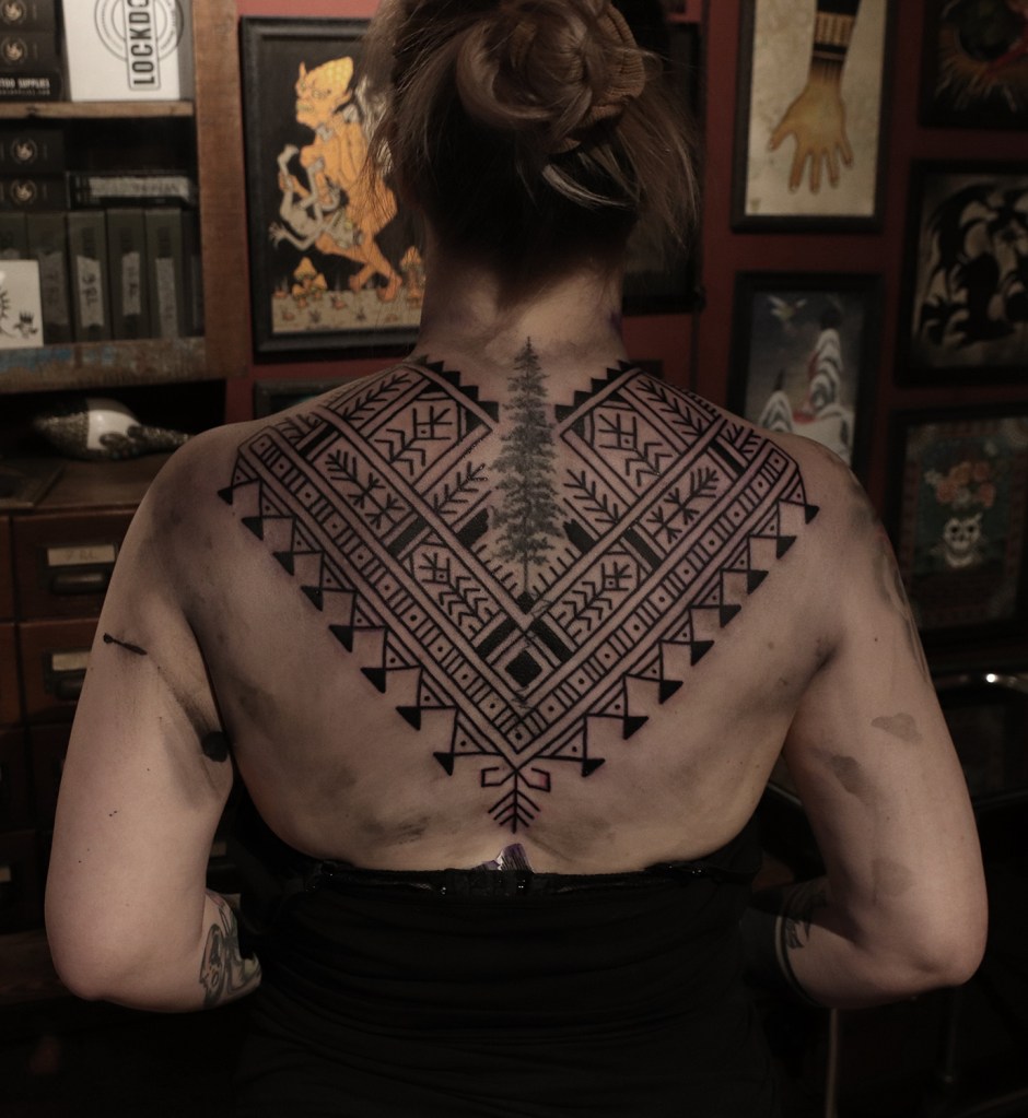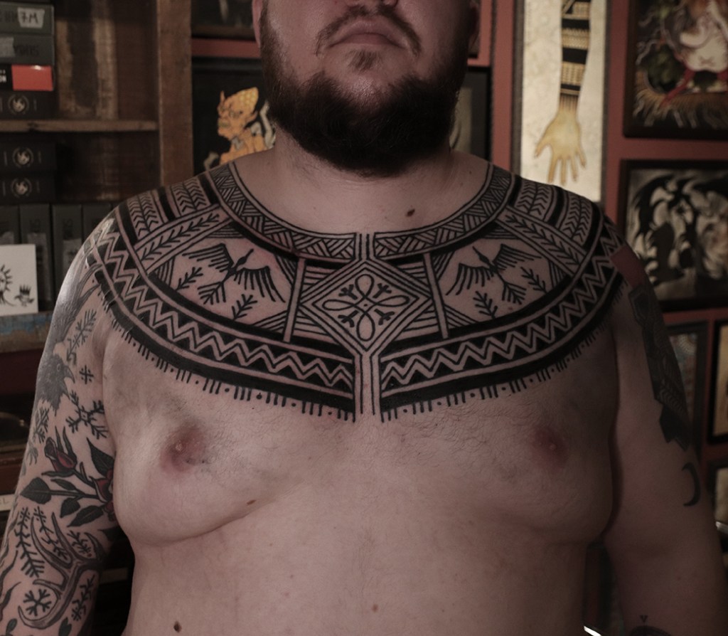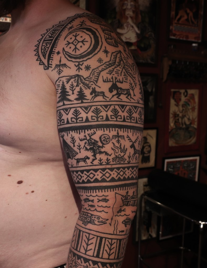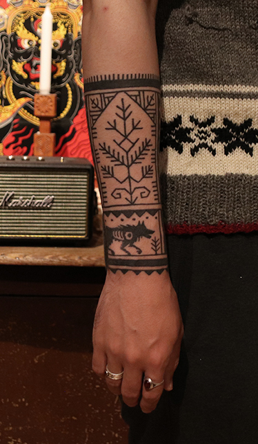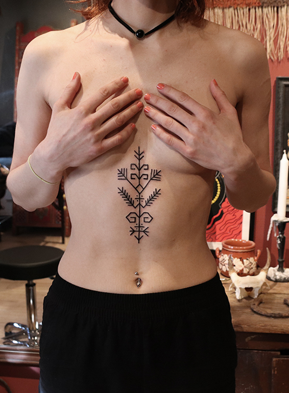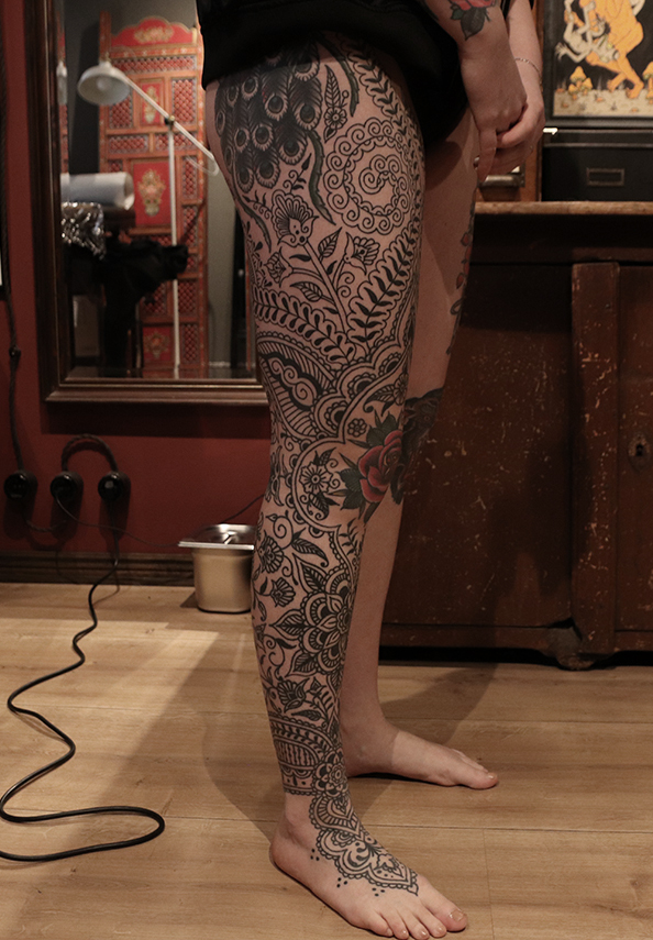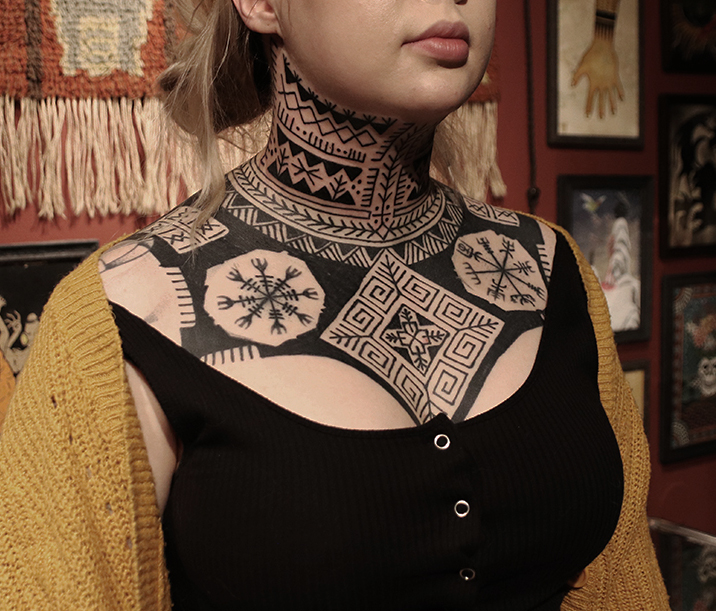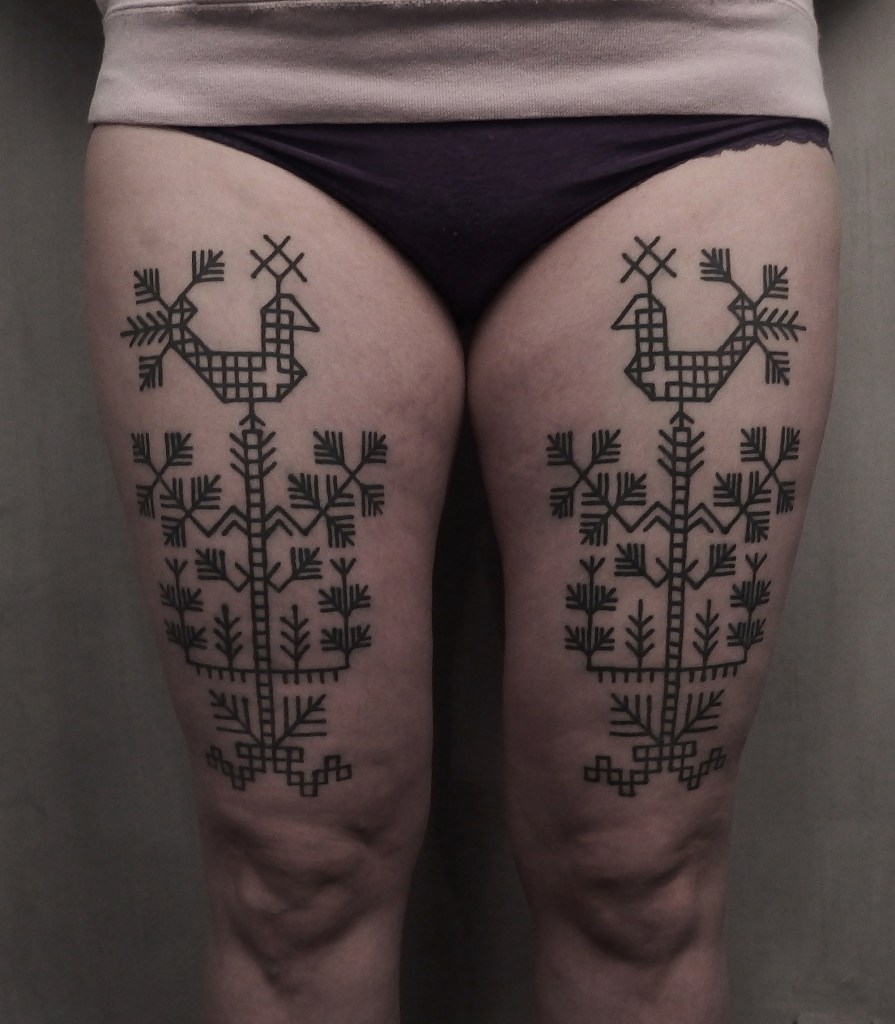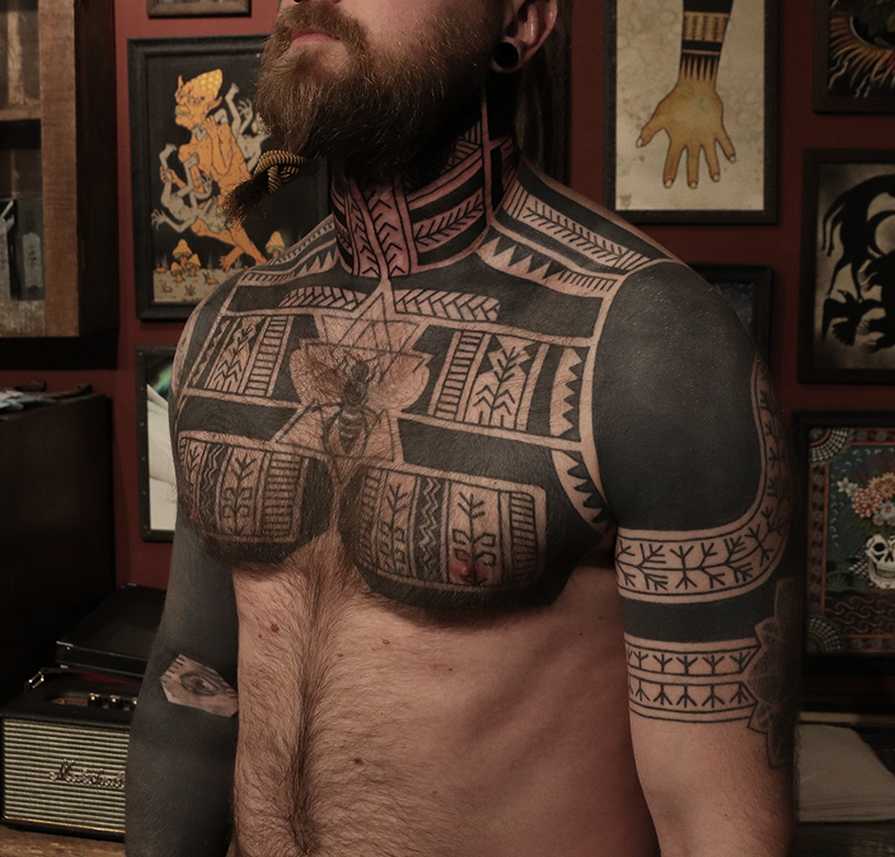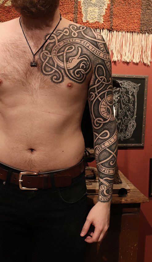 Tatuointiliikkeissä olen työskennellyt vuodesta 2012. Koen vanhat heimokulttuurit ja erilaiset kansanperinteet ja tarinat loputtomana inspiraation lähteenä. Karjalaiset ja muut kotimaiset perinnekuviot ja symbolit ovat olleet päämielenkiintoni viimeiset vuodet, samoin kalliopiirrokset. Toki teen mielelläni muunkin tyylisiä kuvia, eikä kuvan tarvitse aina olla jostakin tietystä kulttuurista tai perinteestä.