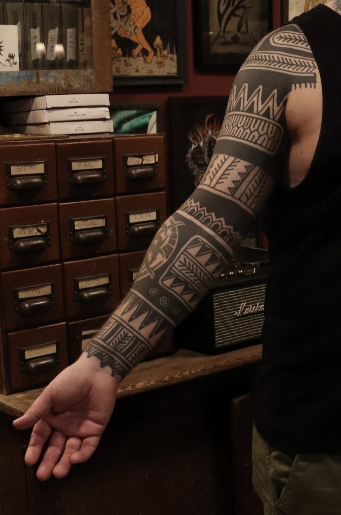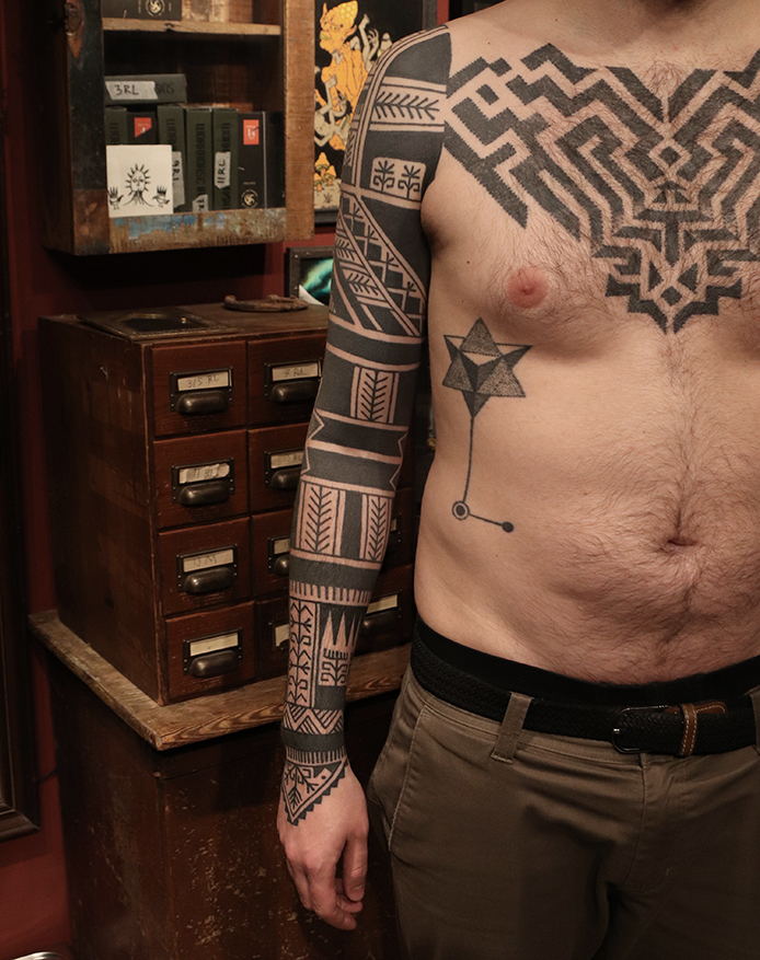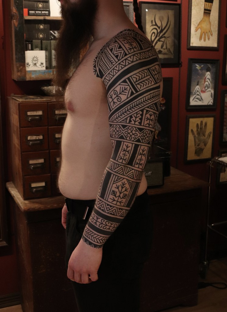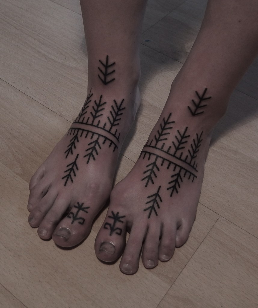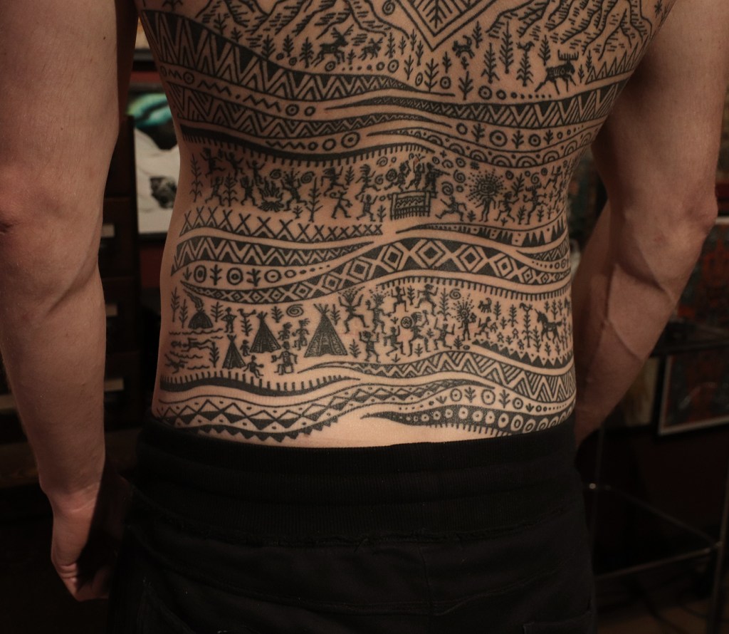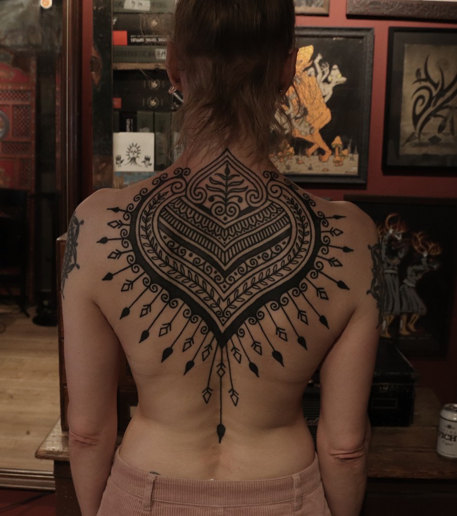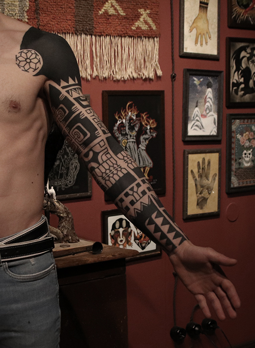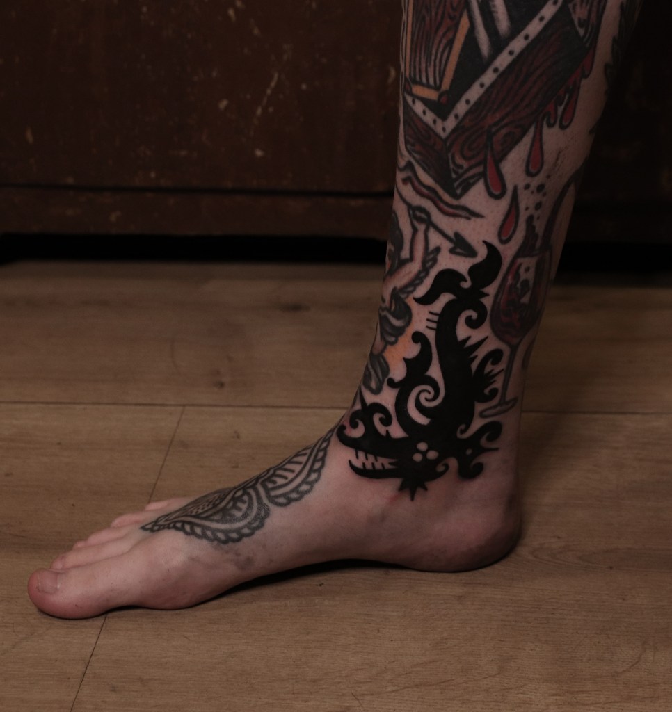 Tatuointiliikkeissä olen työskennellyt vuodesta 2012. Koen vanhat heimokulttuurit ja erilaiset kansanperinteet ja tarinat loputtomana inspiraation lähteenä. Karjalaiset ja muut kotimaiset perinnekuviot ja symbolit ovat olleet päämielenkiintoni viimeiset vuodet, samoin kalliopiirrokset. Toki teen mielelläni muunkin tyylisiä kuvia, eikä kuvan tarvitse aina olla jostakin tietystä kulttuurista tai perinteestä.