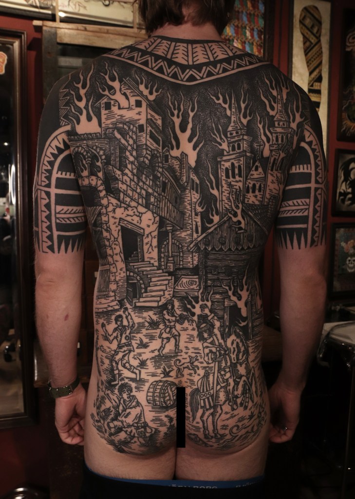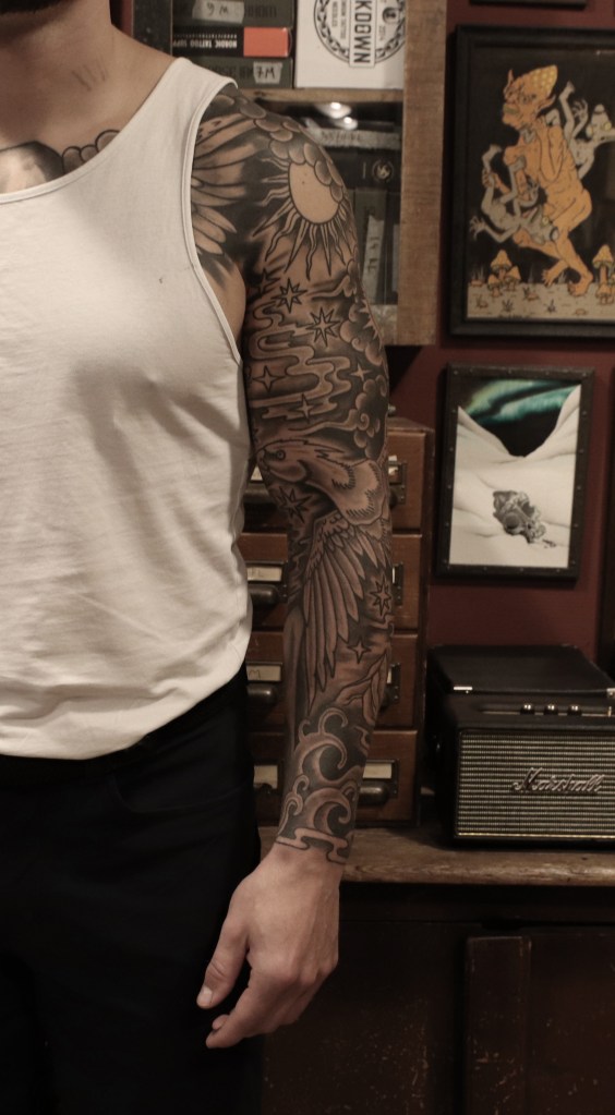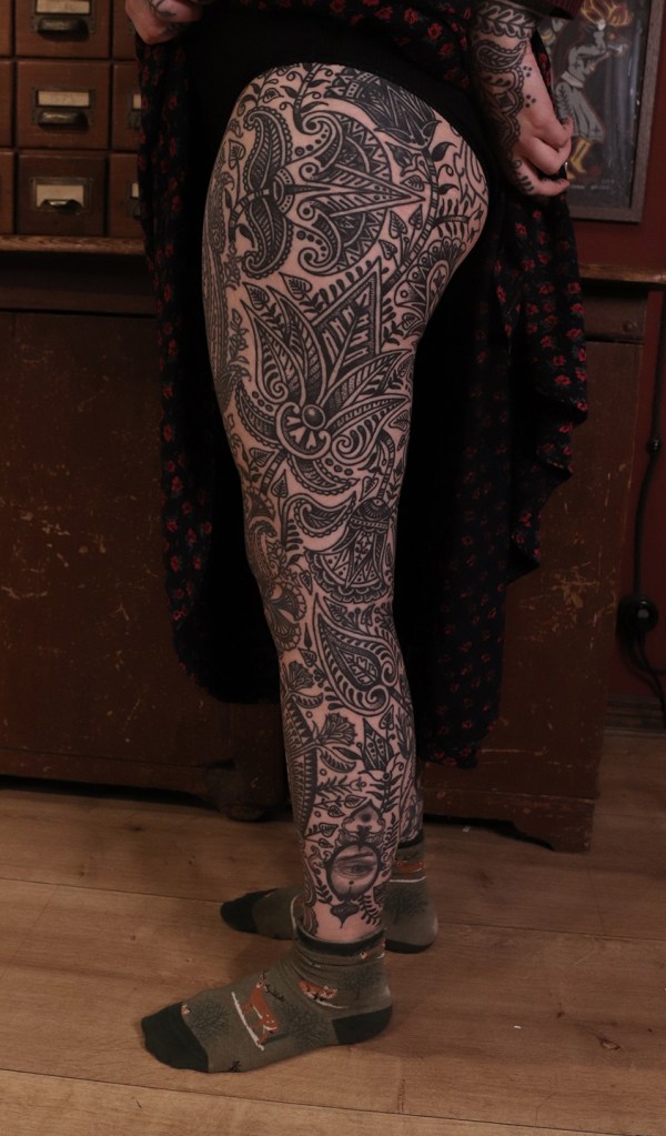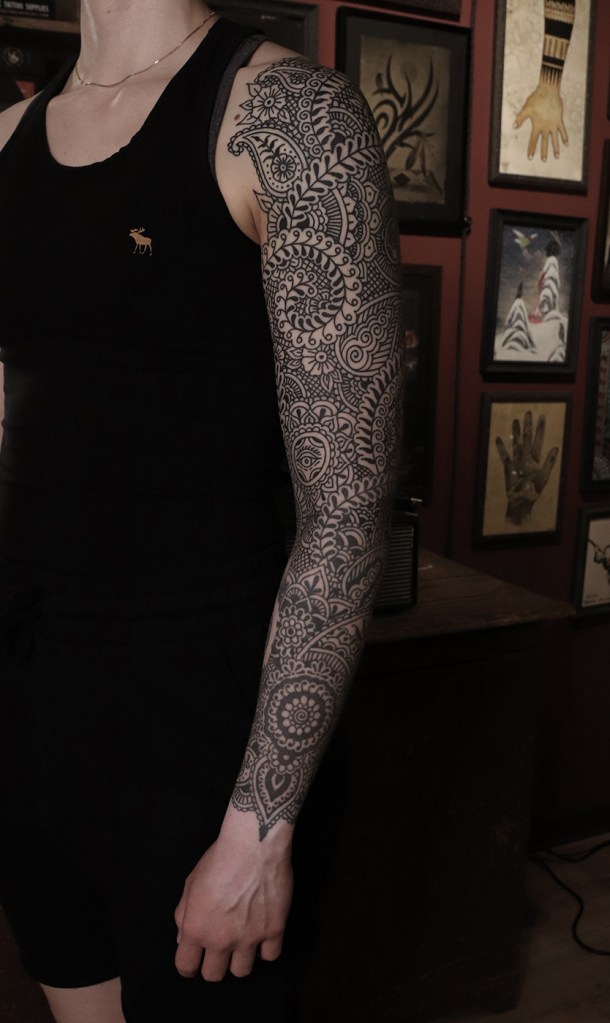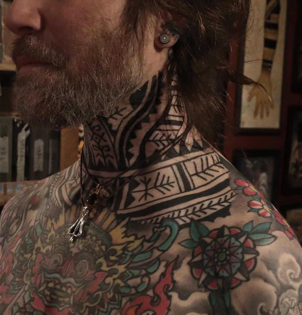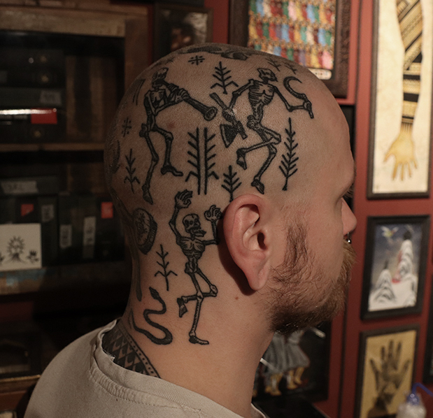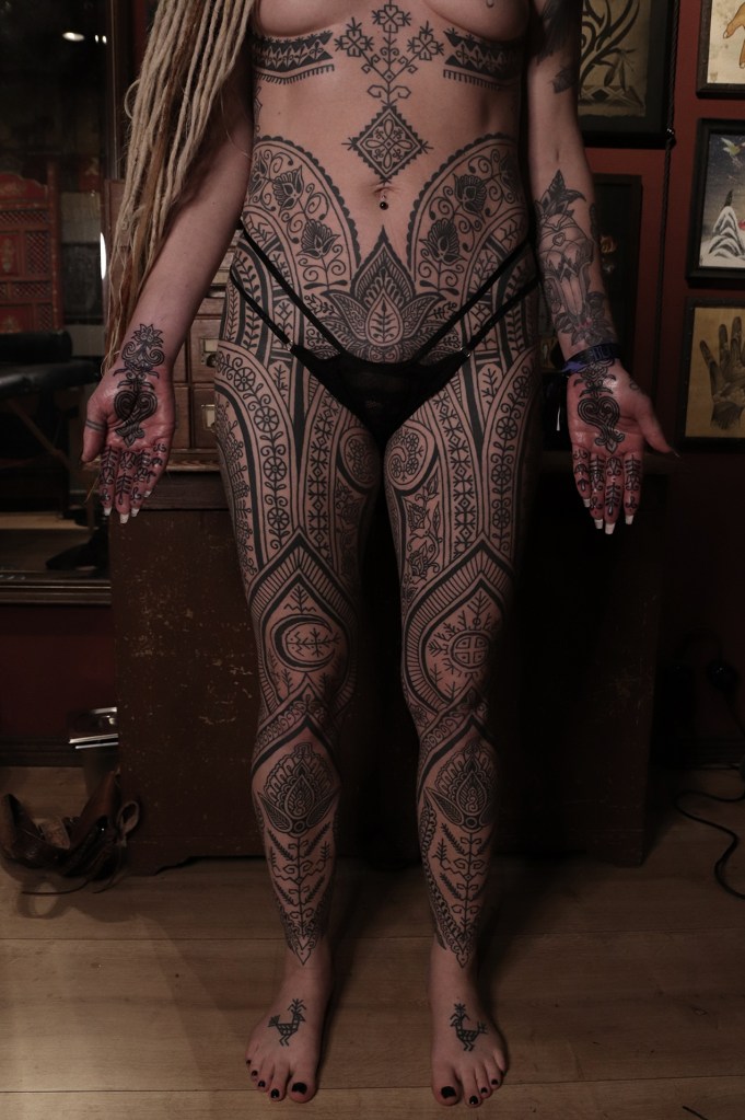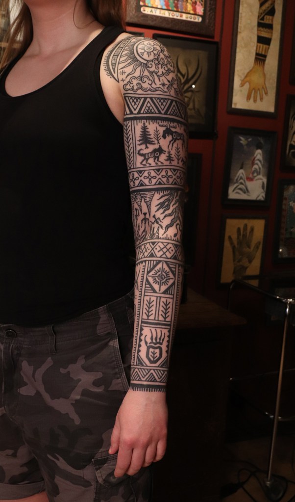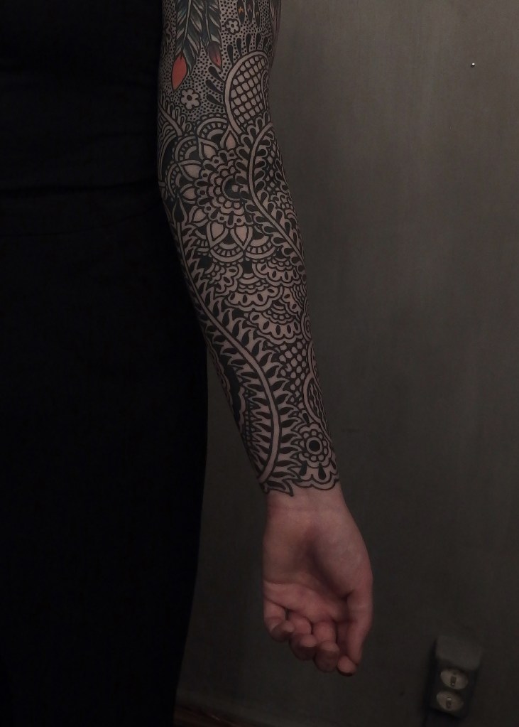 Tatuointiliikkeissä olen työskennellyt vuodesta 2012. Koen vanhat heimokulttuurit ja erilaiset kansanperinteet ja tarinat loputtomana inspiraation lähteenä. Karjalaiset ja muut kotimaiset perinnekuviot ja symbolit ovat olleet päämielenkiintoni viimeiset vuodet, samoin kalliopiirrokset. Toki teen mielelläni muunkin tyylisiä kuvia, eikä kuvan tarvitse aina olla jostakin tietystä kulttuurista tai perinteestä.