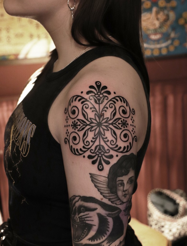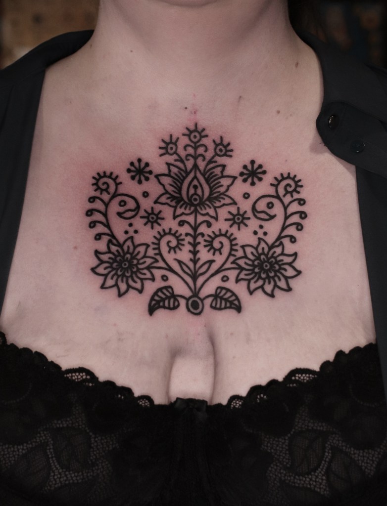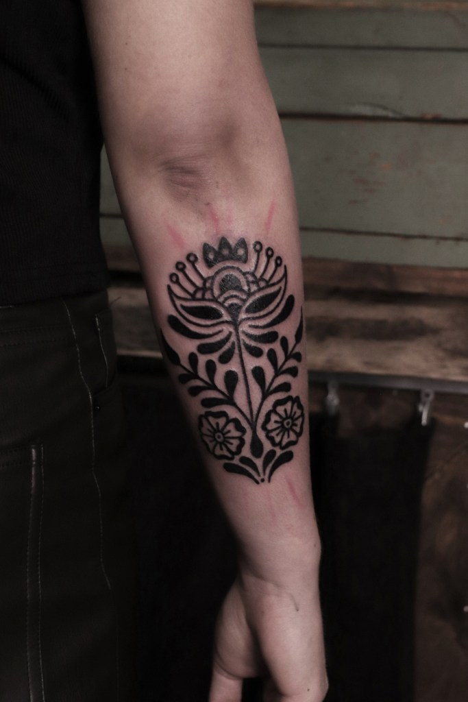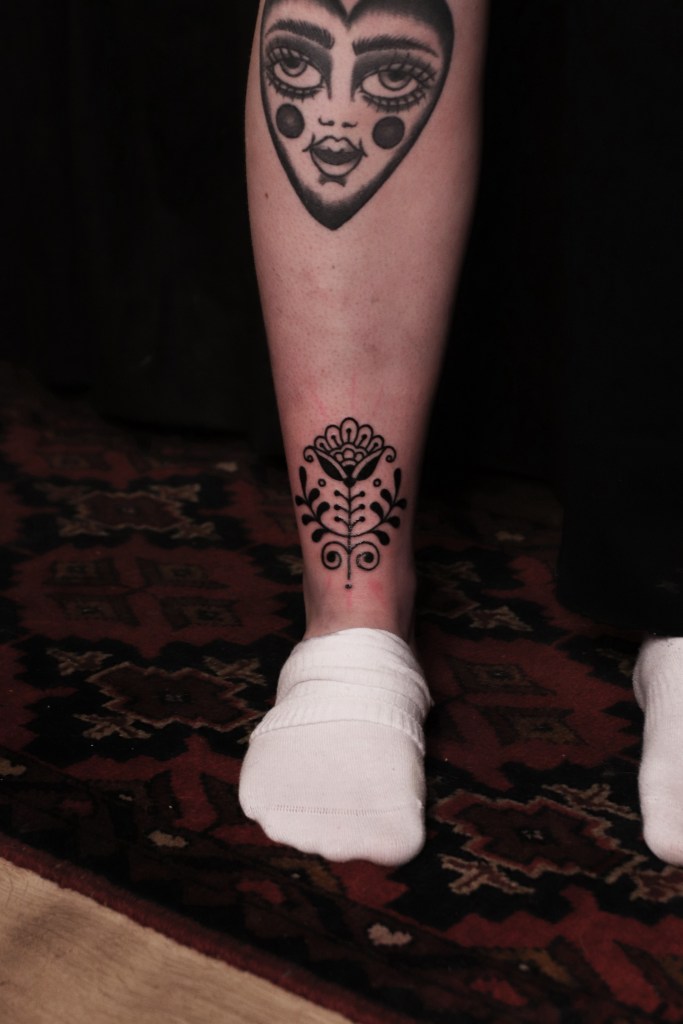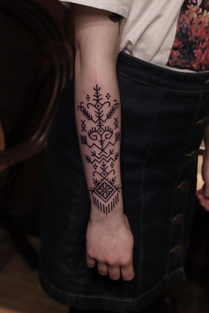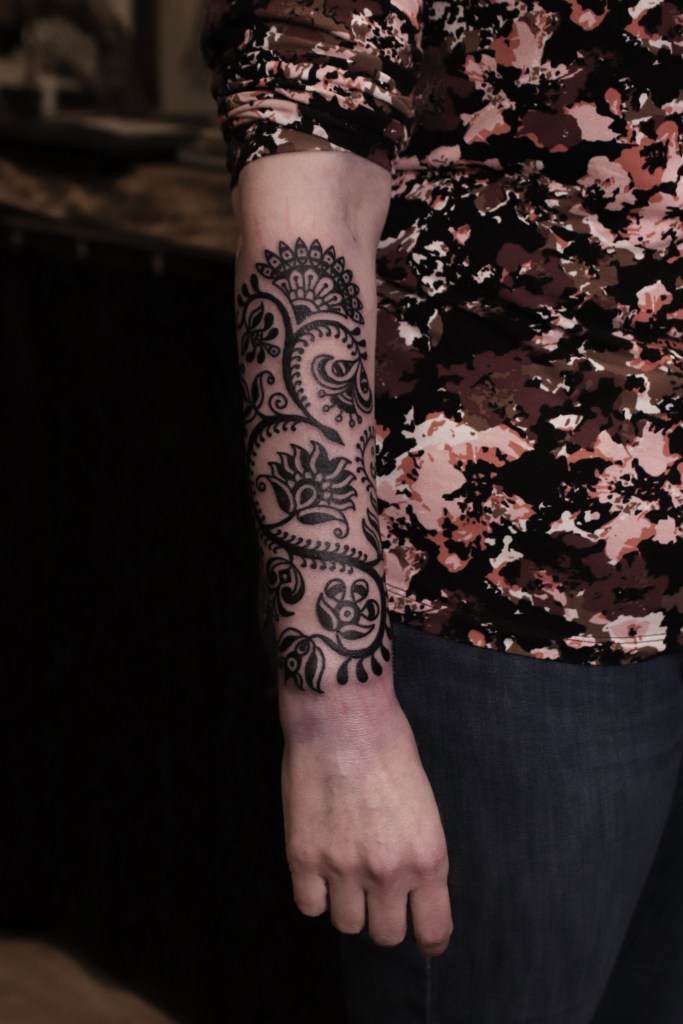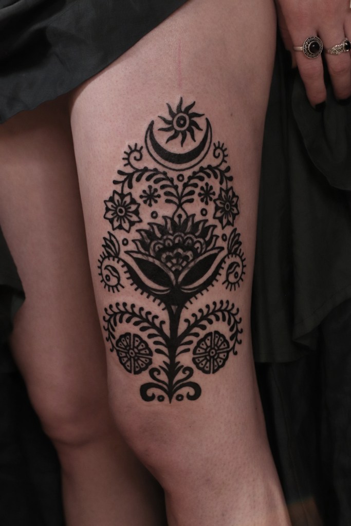 Tatuoinneissa lähellä sydäntäni ovat voimakkaat linjat, vahvat kontrastit ja ajaton tunnelma. Yliopistossa vietettyjen vuosien aikana kahlasin läpi uskontotieteen ja kulttuurien tutkimuksen kursseja, joista ammennan työskentelyssäni inspiroituen muun muassa kansanperinteistä, vanhoista tarinoista, mytologioista ja symboliikasta. Teen toki mielelläni myös muunlaisia tatuointeja, kysy rohkeasti!