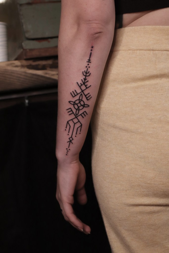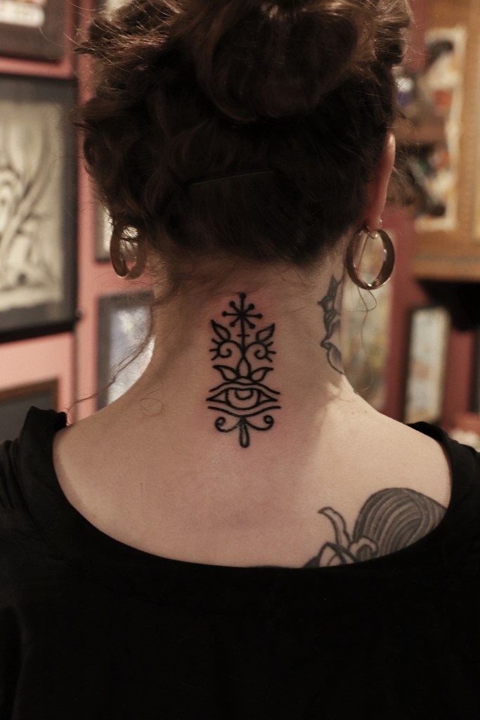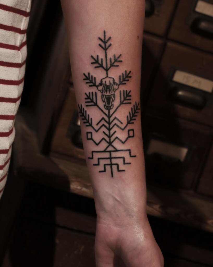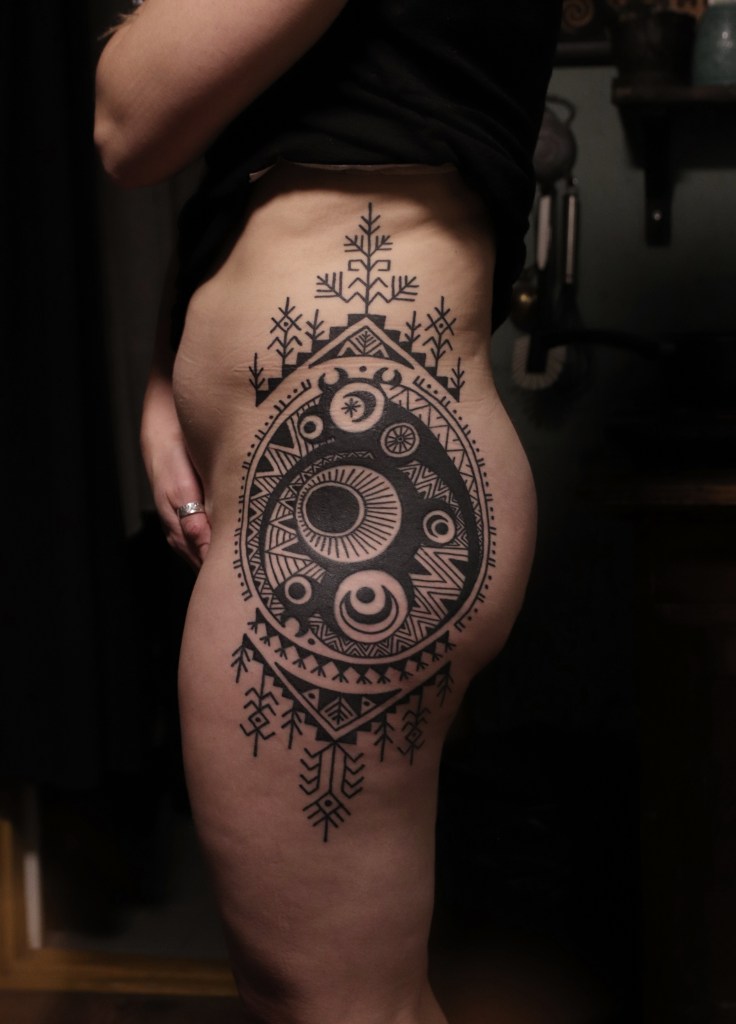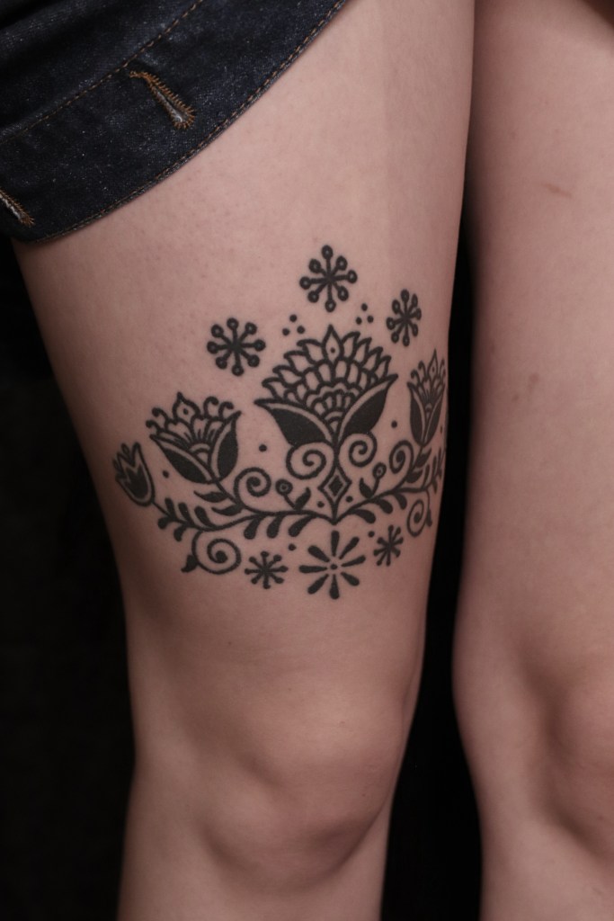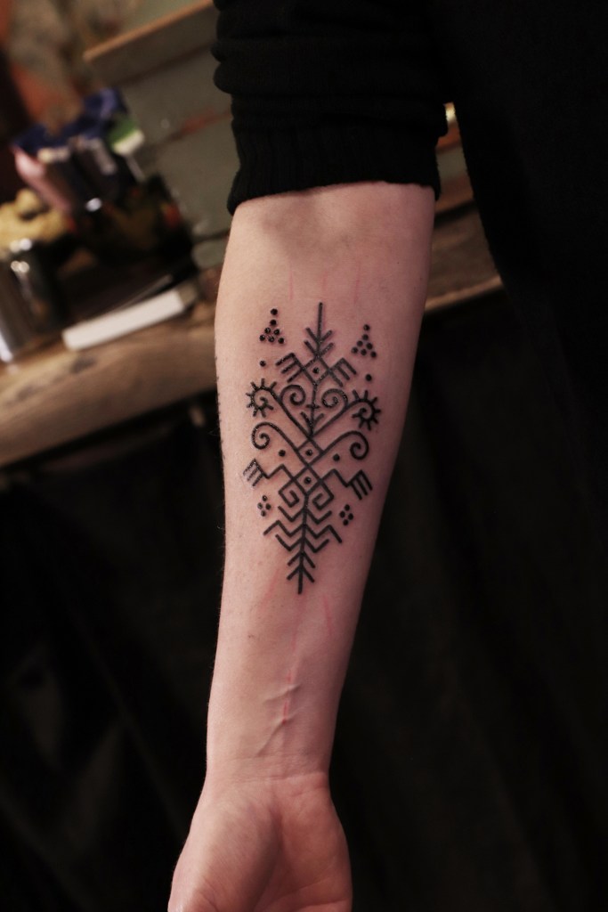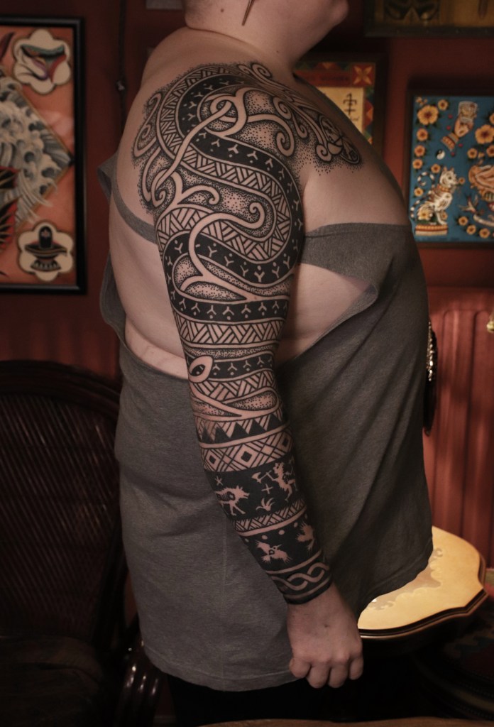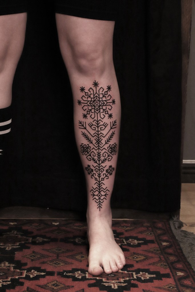 Tatuoinneissa lähellä sydäntäni ovat voimakkaat linjat, vahvat kontrastit ja ajaton tunnelma. Yliopistossa vietettyjen vuosien aikana kahlasin läpi uskontotieteen ja kulttuurien tutkimuksen kursseja, joista ammennan työskentelyssäni inspiroituen muun muassa kansanperinteistä, vanhoista tarinoista, mytologioista ja symboliikasta. Teen toki mielelläni myös muunlaisia tatuointeja, kysy rohkeasti!