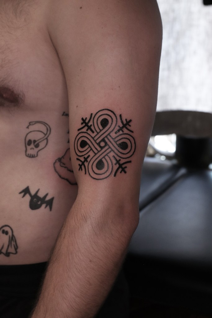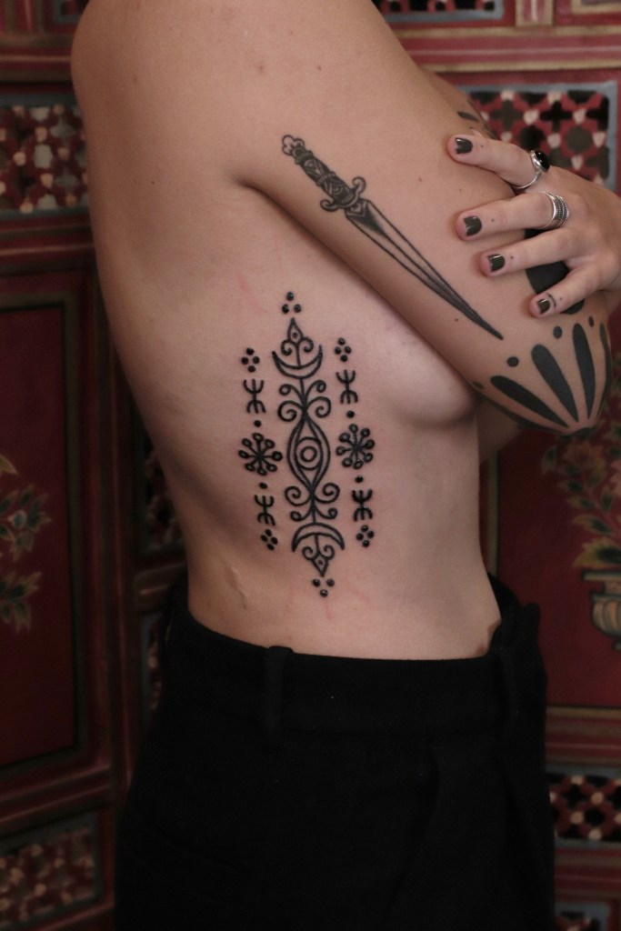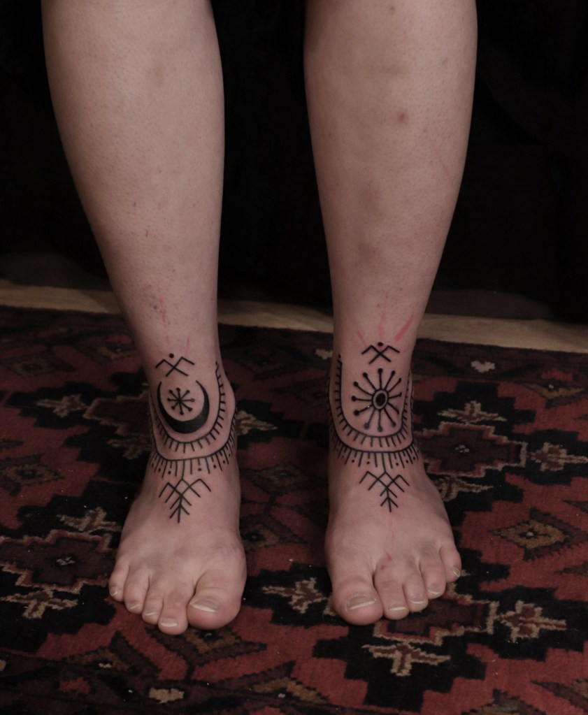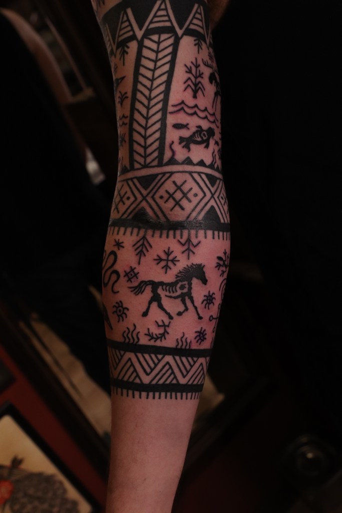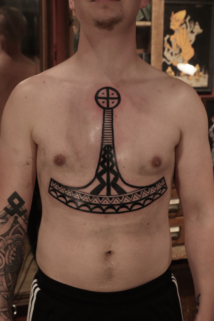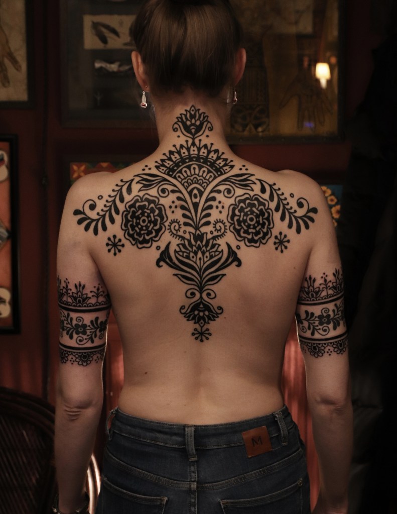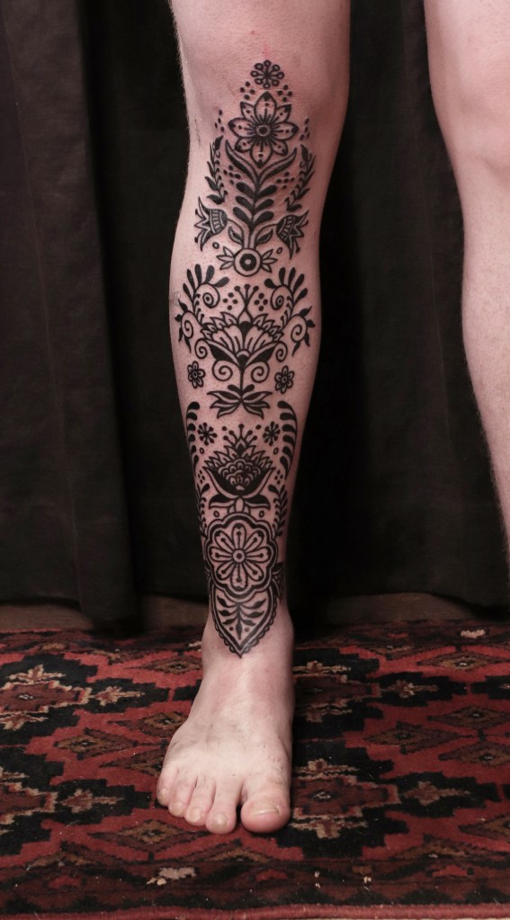 Tatuoinneissa lähellä sydäntäni ovat voimakkaat linjat, vahvat kontrastit ja ajaton tunnelma. Yliopistossa vietettyjen vuosien aikana kahlasin läpi uskontotieteen ja kulttuurien tutkimuksen kursseja, joista ammennan työskentelyssäni inspiroituen muun muassa kansanperinteistä, vanhoista tarinoista, mytologioista ja symboliikasta. Teen toki mielelläni myös muunlaisia tatuointeja, kysy rohkeasti!