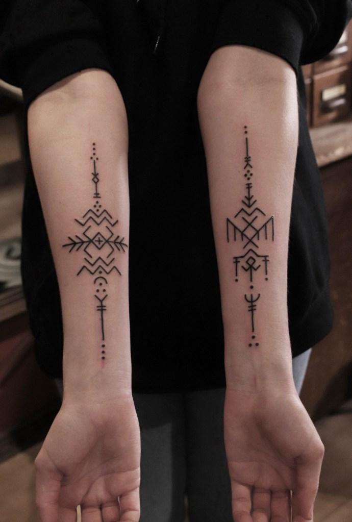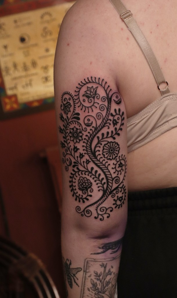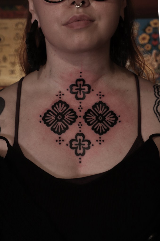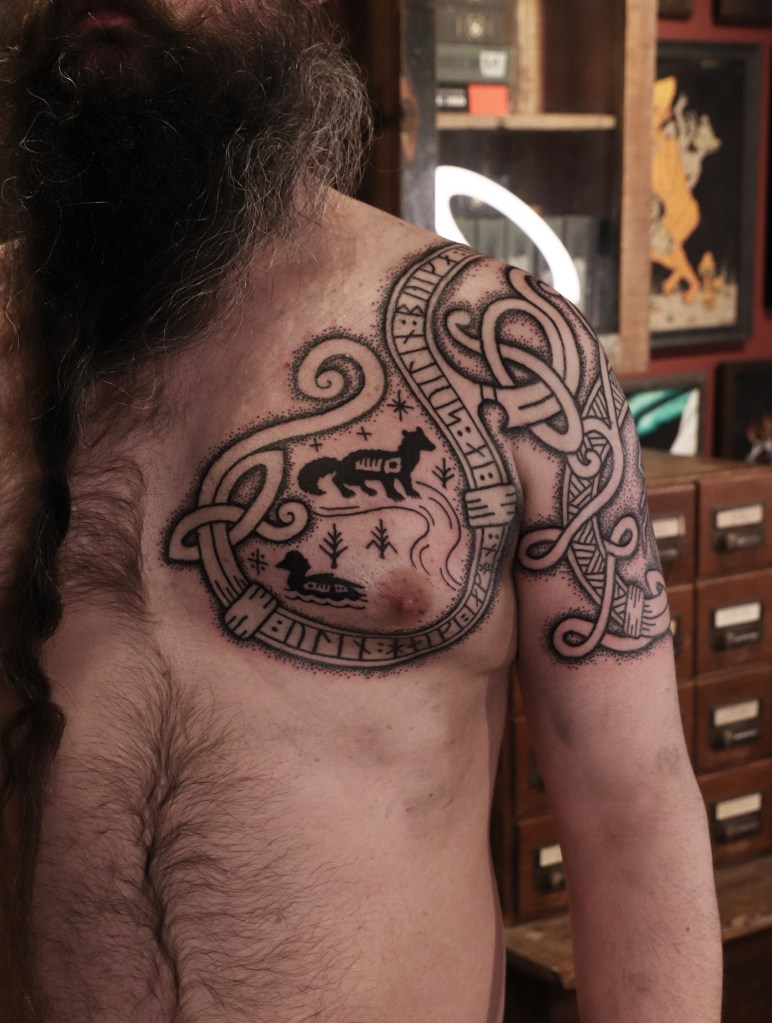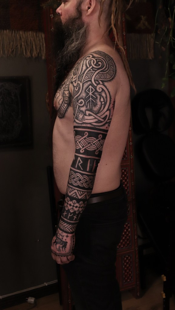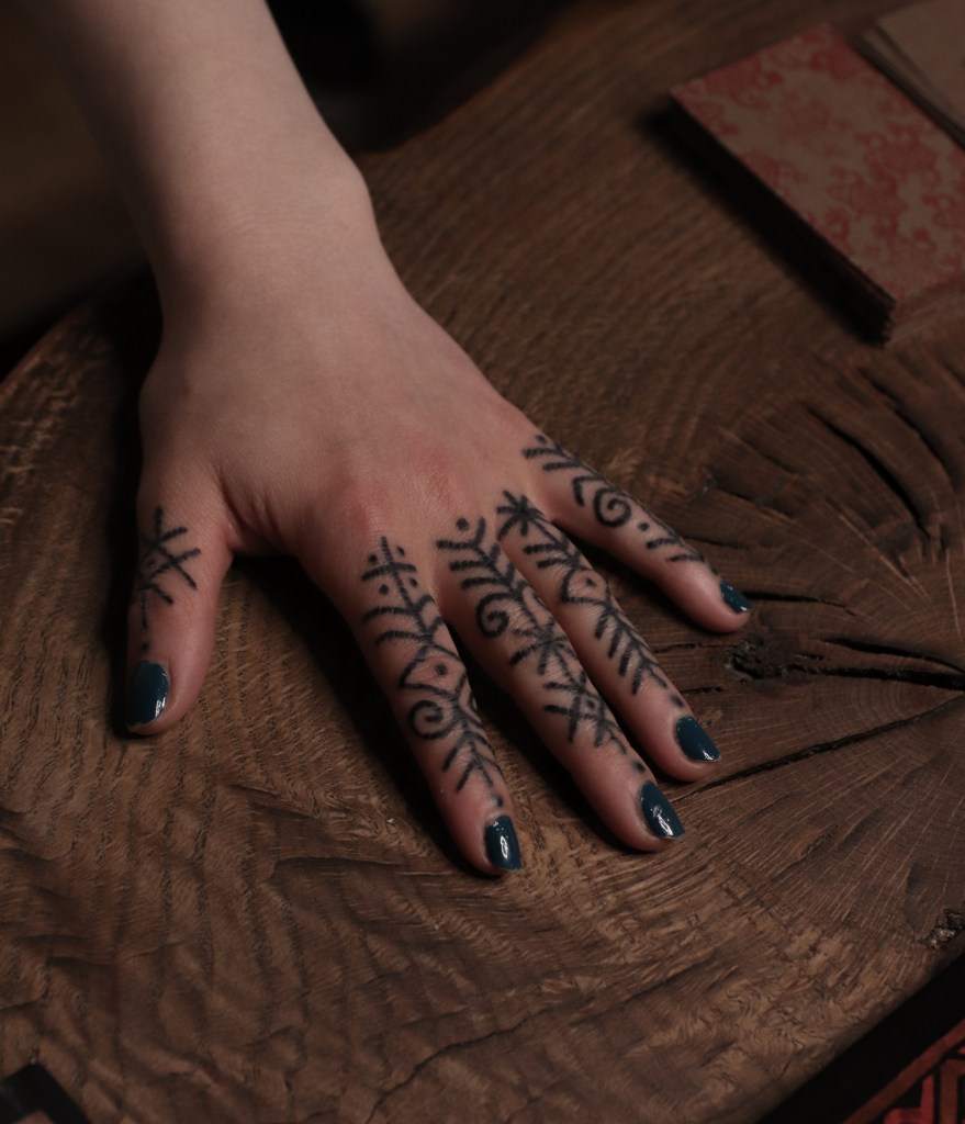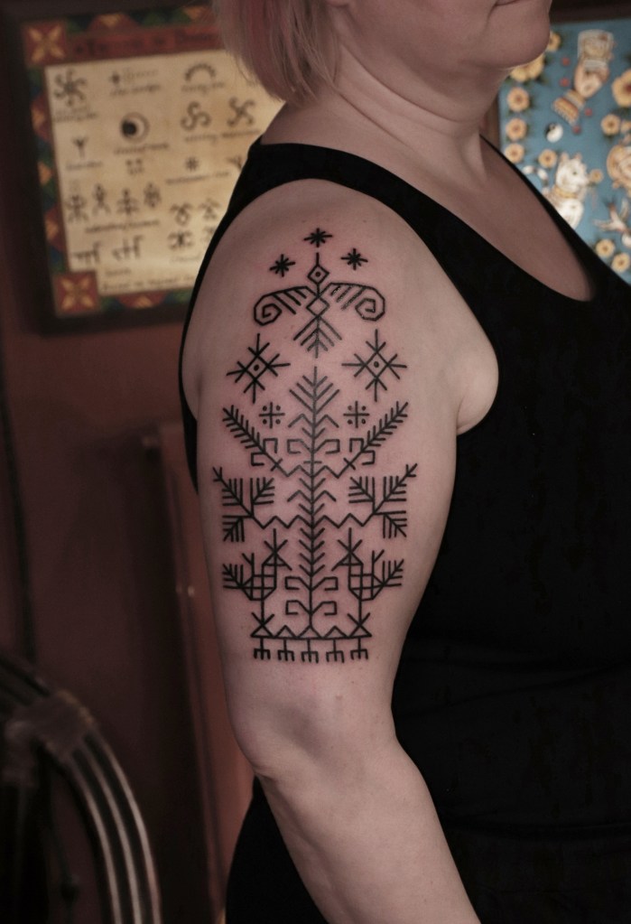 Tatuoinneissa lähellä sydäntäni ovat voimakkaat linjat, vahvat kontrastit ja ajaton tunnelma. Yliopistossa vietettyjen vuosien aikana kahlasin läpi uskontotieteen ja kulttuurien tutkimuksen kursseja, joista ammennan työskentelyssäni inspiroituen muun muassa kansanperinteistä, vanhoista tarinoista, mytologioista ja symboliikasta. Teen toki mielelläni myös muunlaisia tatuointeja, kysy rohkeasti!
