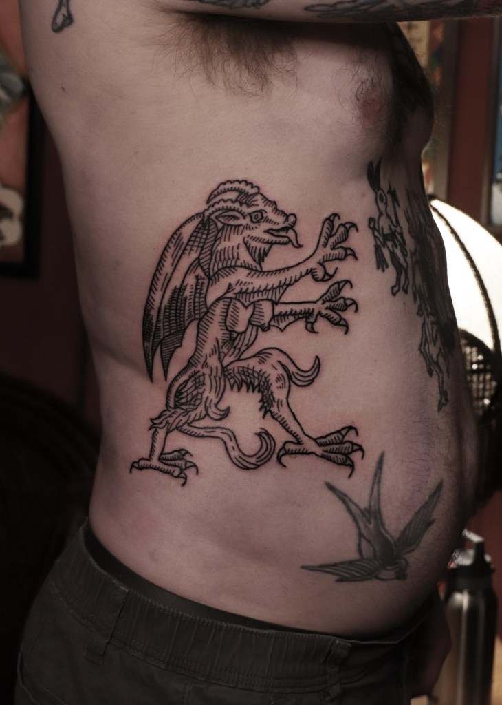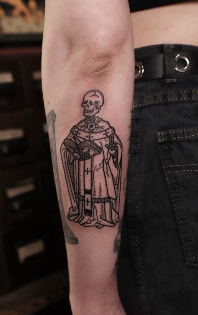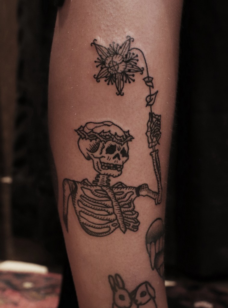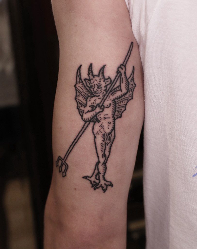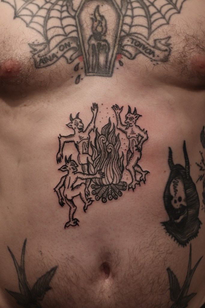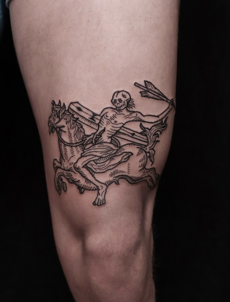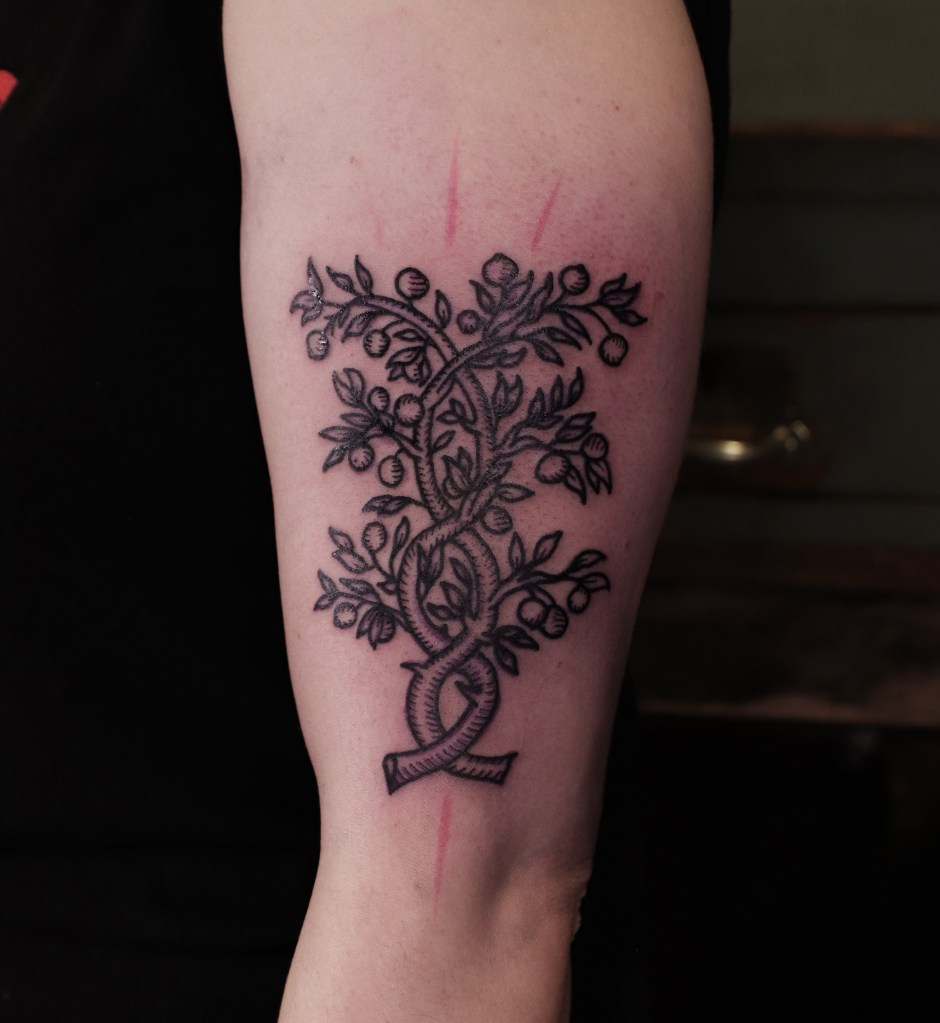 Tatuoinneissa lähellä sydäntäni ovat voimakkaat linjat, vahvat kontrastit ja ajaton tunnelma. Yliopistossa vietettyjen vuosien aikana kahlasin läpi uskontotieteen ja kulttuurien tutkimuksen kursseja, joista ammennan työskentelyssäni inspiroituen muun muassa kansanperinteistä, vanhoista tarinoista, mytologioista ja symboliikasta. Teen toki mielelläni myös muunlaisia tatuointeja, kysy rohkeasti!